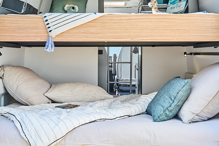 Découvrez le V630S, le fourgon aménagé Pilote, spécialement conçu pour voyager en famille. Ses lits superposés à l’arrière offrent une grande qualité de couchage, pour 2, 3 ou 4 personnes.